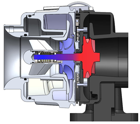 turbocharger. With the Aerocharger® the bearing assembly is located in the